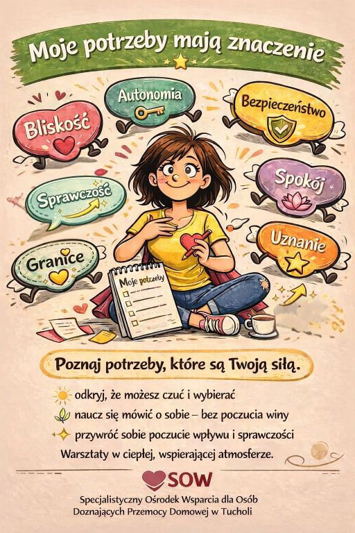 Zapraszamy na zajęcia "Moje potrzeby mają znaczenie". Podczas tych zajęć przyjrzymy się naszym potrzebom, nauczymy się je roz[poznawać i nazywać, porozmawiamy o granicach, sprawczości i dbaniu o siebie. Pokażemy, że potrzeby to nie egoizm, ale fundament dobrostanu.