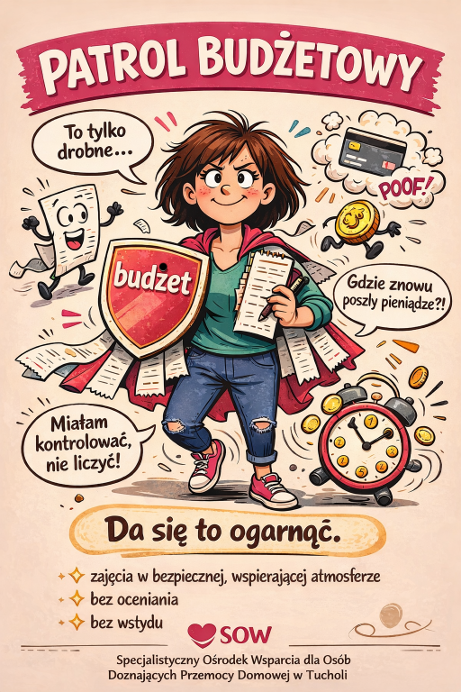Zapraszamy na "Patrol budżetowy"-zajęcia, które pomagają odzyskać spokój i wpływ nad codziennymi finansami, bez presji i oceniania. Jesteśmy na etapie tworzenia grupy.